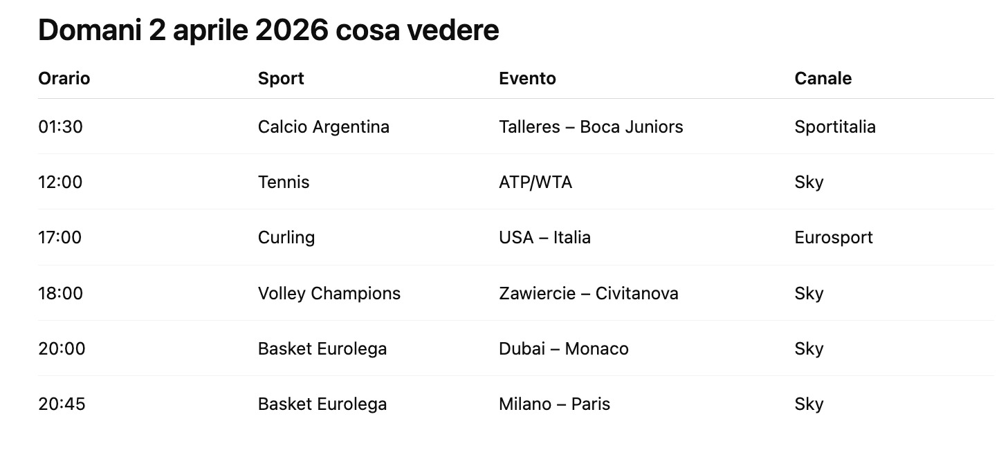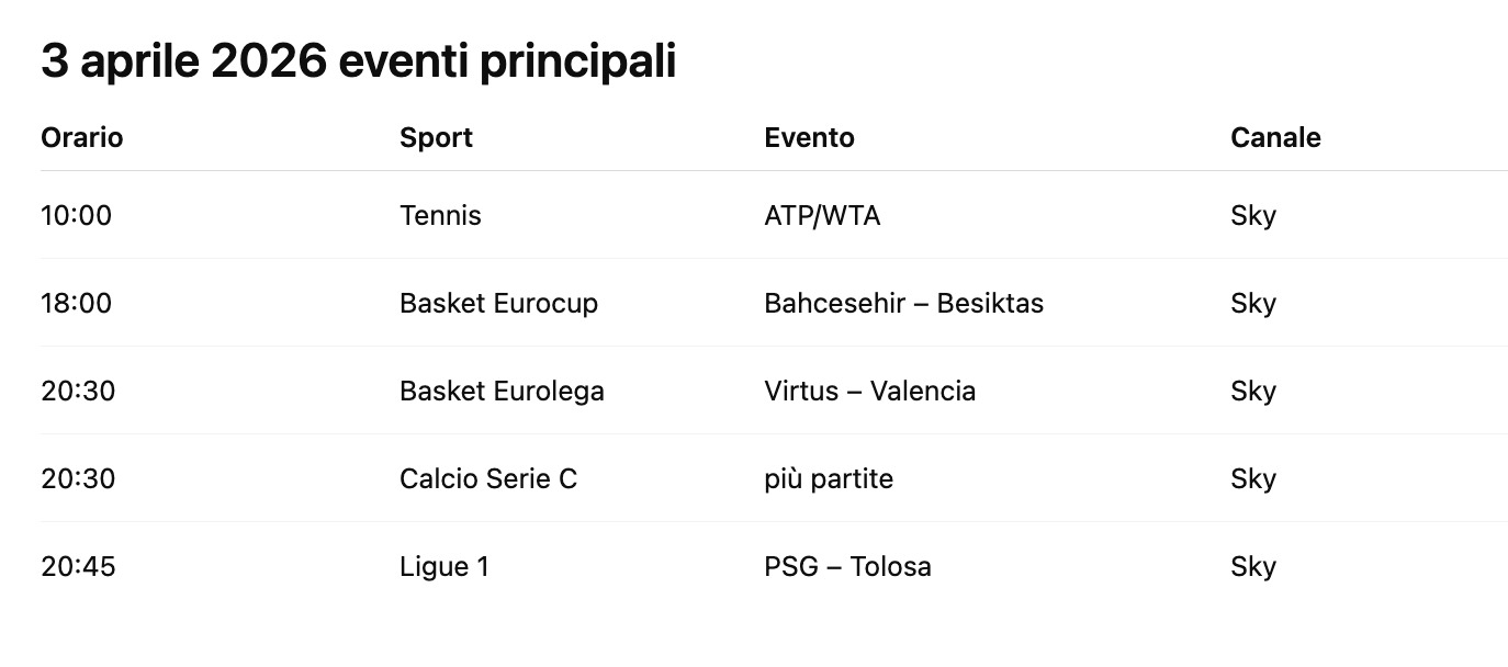 Calcio europeo, NBA, tennis internazionale, ciclismo WorldTour e competizioni di volley e basket convivono nello stesso spazio mediatico.